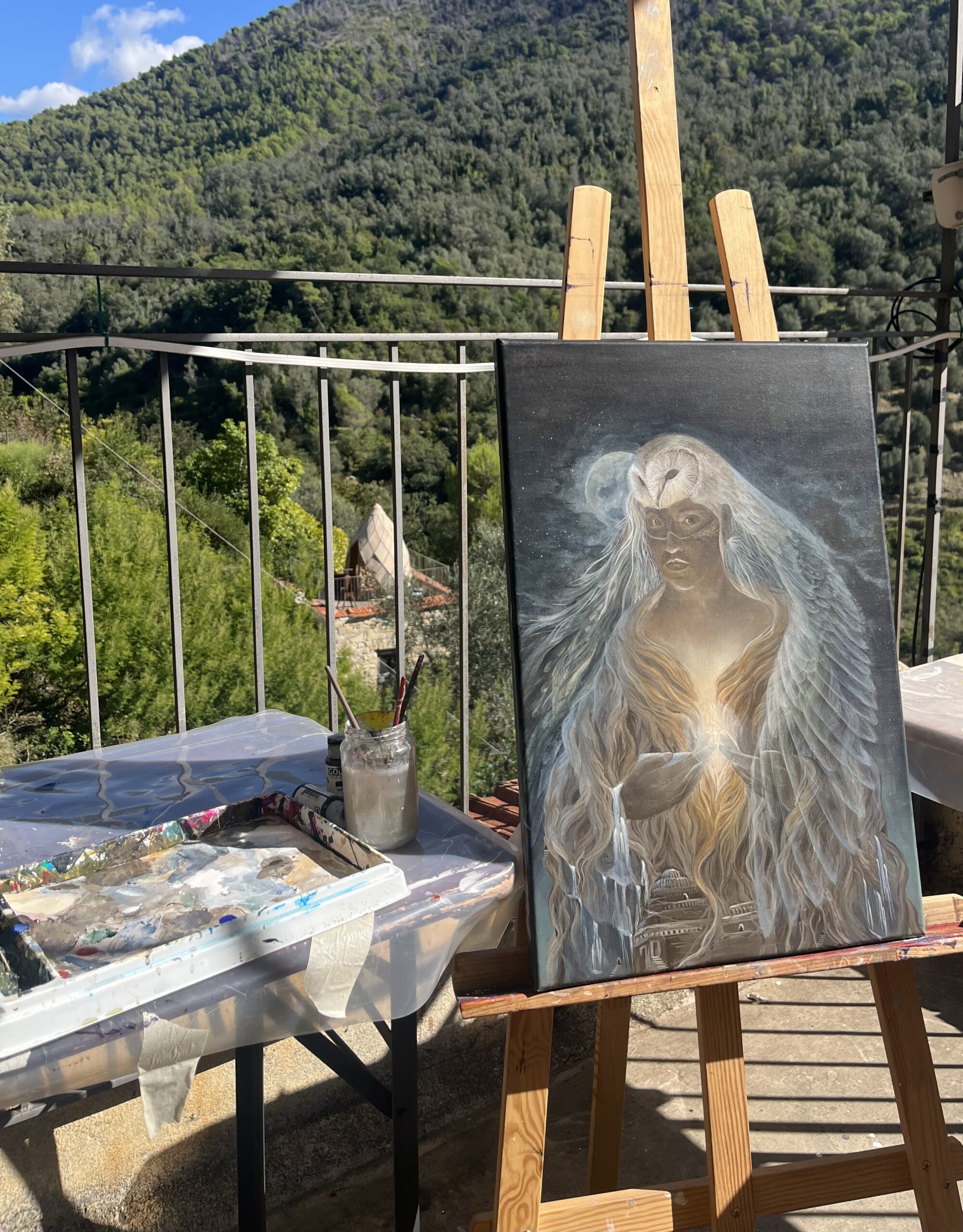 “Keeper of the Inner Wisdom” – An original painting by Maili Kukke.  40 x 60 cm Acrylic on canvas Painted by Maili Kukke 2025 If you want to purchase this painting email me maili.kukke@gmail.com or contact me through Instagram @mailikukke